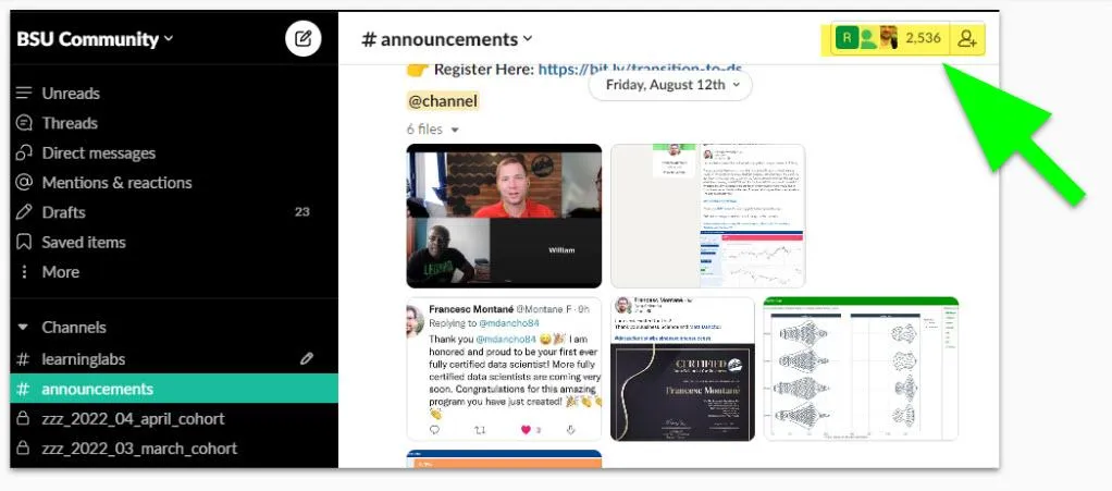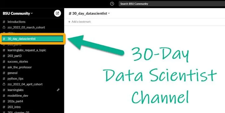 Get help from over 2500 students in our community. And you even get access to a special channel just for 30-day data scientist students.