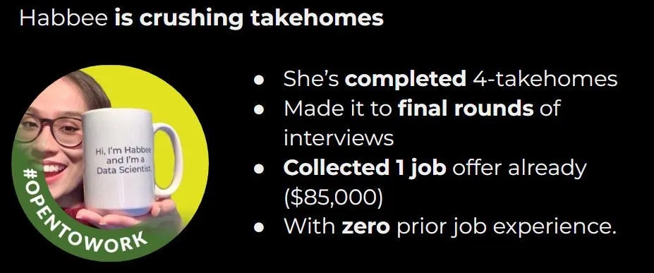 I had a student (we'll call him Agent Smith) that went undercover and landed 4 data science jobs using the techniques I teach.