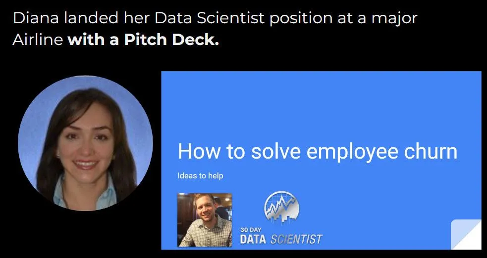 The pitch deck is the secret that helped Diana get her Senior Data Scientist position at a major Airline.